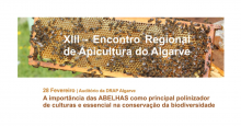 «A Importância das Abelhas como principal polinizador de culturas e essencial na conservação da biodiversidade» será o tema do XIII Encontro Regional de Apicultura do Algarve, organizado pela MELGARBE, que se realizará no dia 28 de fevereiro, no auditório da DRAP Algarve.