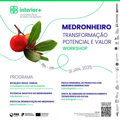 O CATAA – Centro de Apoio Tecnológico Agroalimentar, em parceria com o IPCB - Politécnico de Castelo Branco e no âmbito do Projeto Interior+ - Comunidades Rurais do Interior e de Montanha, convida-o/a a descobrir o incrível potencial do medronho neste workshop exclusivo!. O workshop realiza-se a 31 de janeiro e tem lugar no Edifício do CATAA, na Zona Industrial de Castelo Branco.